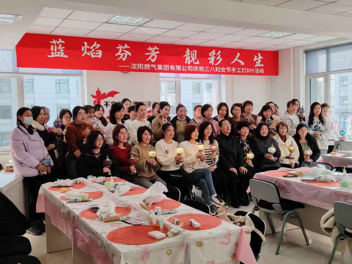 2024年3月7日,燃气集团女职工,欢聚一堂,在会议室里举办了手工灯DIY制作活动。